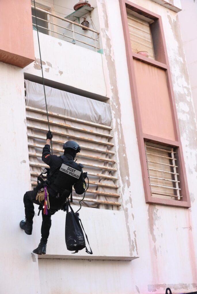 وأوضح المصدر ذاته أن هذه العملية الأمنية تم تنفيذها في مكانين مختلفين، عبارة عن منزلين سكنيين يوجدان بكل من تجزئة العمران وتجزئة الأمل بحي الوحدة بإقليم حد السوالم، وشارك فيها تقنيو الكشف عن المتفجرات، وعناصر الفرقة السينوتقنية التي تضم الكلاب المدربة للشرطة المتخصصة في رصد المتفجرات والعبوات الناسفة، بالإضافة إلى مروحية للدرك الملكي قامت بتمشيط أماكن التدخل من الأعلى، كانت تحمل قناصة متخصصين في الرماية عالية الدقة تابعين للقوة الخاصة للمديرية العامة لمراقبة التراب الوطني.