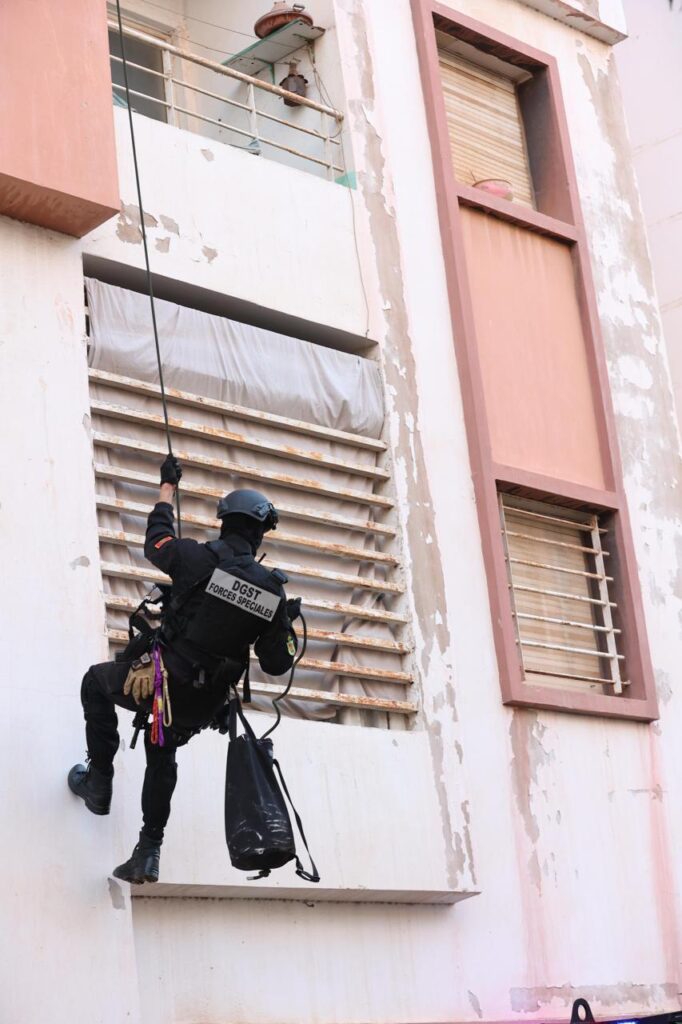 وأوضح المصدر ذاته أن هذه العملية الأمنية تم تنفيذها في مكانين مختلفين، عبارة عن منزلين سكنيين يوجدان بكل من تجزئة العمران وتجزئة الأمل بحي الوحدة بإقليم حد السوالم، وشارك فيها تقنيو الكشف عن المتفجرات، وعناصر الفرقة السينوتقنية التي تضم الكلاب المدربة للشرطة المتخصصة في رصد المتفجرات والعبوات الناسفة، بالإضافة إلى مروحية للدرك الملكي قامت بتمشيط أماكن التدخل من الأعلى، كانت تحمل قناصة متخصصين في الرماية عالية الدقة تابعين للقوة الخاصة للمديرية العامة لمراقبة التراب الوطني.