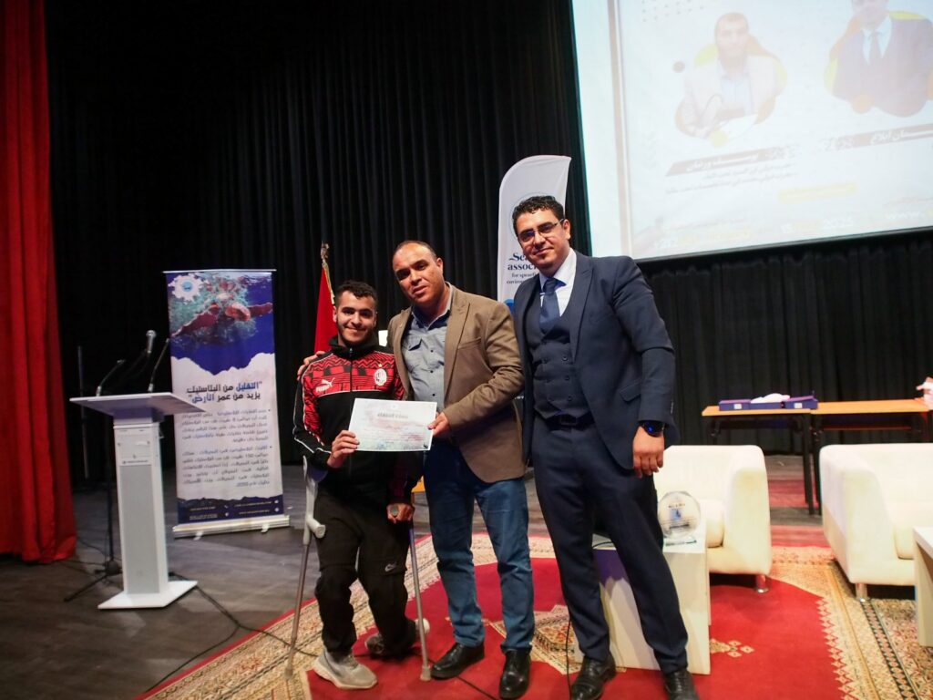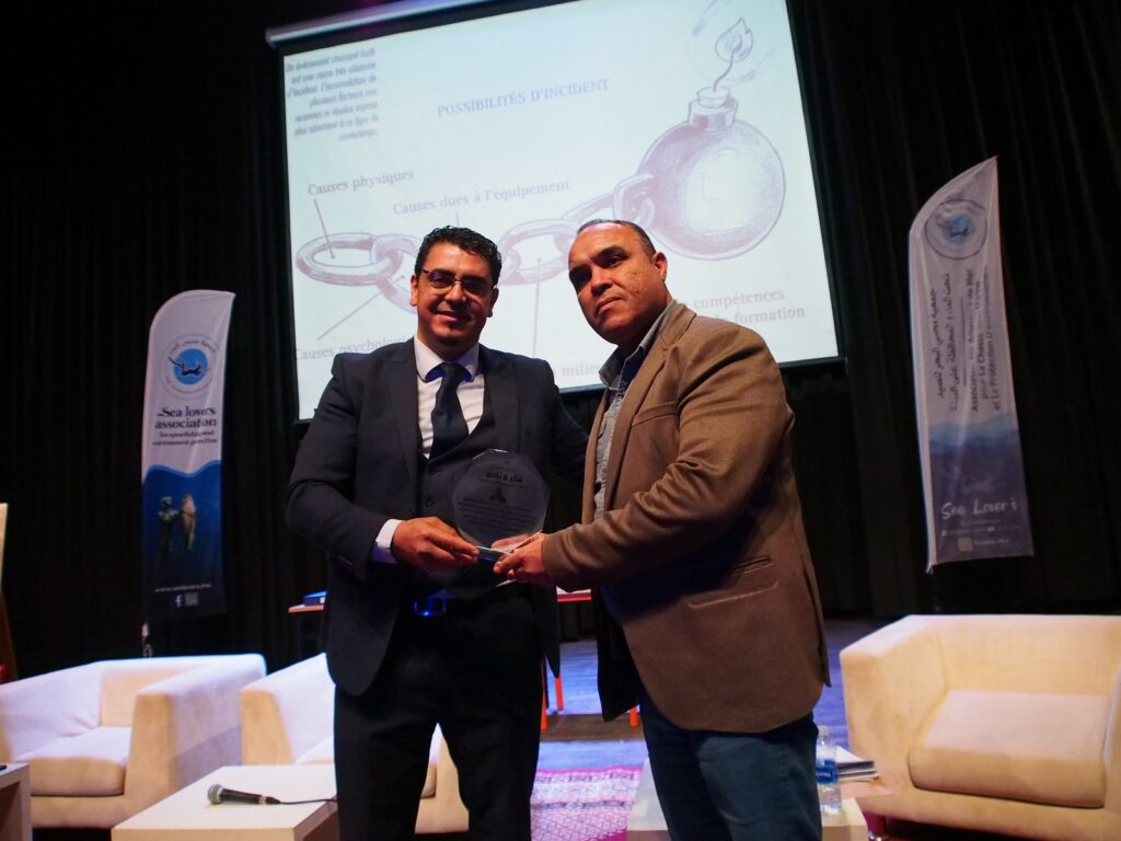 وفي ختام الفعالية، تم تقديم درع شكر و عرفان الى كل من الأستاذ مولاي عبد العزيز بن الحبيب، رئيس مصلحة الصيد البحري بمندوبية الصيد البحري بأكادير على جهوده المبذولة لتأطيره القانوني للجمعية وكذالك مواكبته الدائمة للجمعية في كل الانشطة التي تروم حماية البيئة البحرية و كذا تعزيز السلوكيات الصديقة للبيئة.
