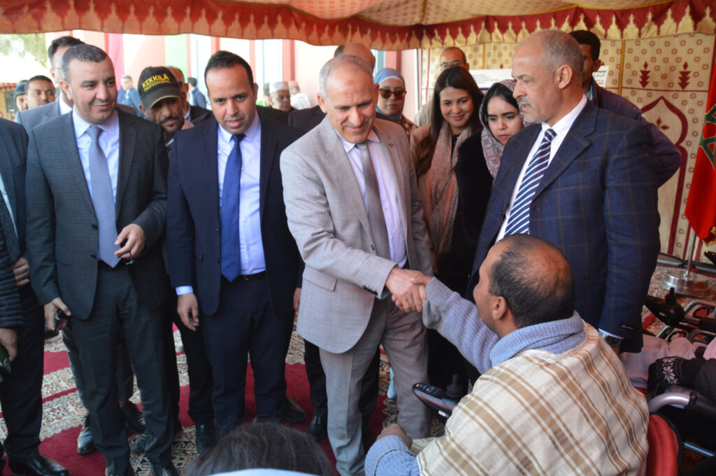وفي ذات السياق أشرف السيد العامل رفقة السيد مندوب التعاون الوطني على توزيع مجموعة من الكراسي الكهربائية المتحركة مقتناه في اطار شراكة ما بين المبادرة الوطنية للتنمية البشرية ومندوبية التعاون الوطني على عدد من ذوي الاحتياجات الخاصة الذين يعانون من إعاقة حركية.