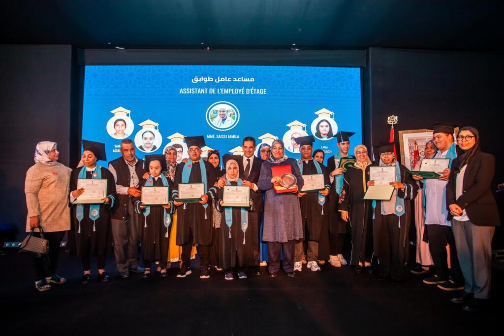 ويأتي تخرج الفوج الأول من المتدربين ذوي الإعاقة الذهنية، والذي أطلق عليه إسم “دفعة الأمل”، والمكوّن من 35 متدرباً، بينهم 10 فتيات، تتويجاً للمجهودات التي يبذلها المركز الوطني محمد السادس للمعاقين، باعتباره مؤسسةً مرجعيةً على المستويين الجهوي والوطني في مجال التكفل متعدد الأبعاد بالأشخاص في وضعية إعاقة ومنصةً علميةً ومهنيةً تهدف إلى تطوير آليات التكوين والإدماج الاجتماعي وتعزيز استقلالية المستفيدين، انسجاماً مع أفضل الممارسات المعتمدة وطنياً ودولياً.