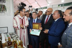 وقام الوفد الرسمي بجولة تفقدية داخل أروقة المعرض، حيث اطلع عن كثب على مختلف أجنحة العرض، وتوقف عند عدد من التعاونيات العارضة التي تمثل جهات المملكة كافة، مستمعًا لشروحات العارضين حول طرق إنتاج وتثمين المنتوجات، خصوصًا منها المرتبطة بالموارد الطبيعية والمجالية كزيت الأركان، العسل، الزعفران، التمور، الكسكس، الصبار، والنباتات الطبية والعطرية.