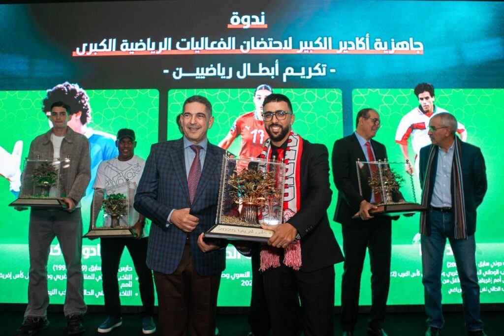 وشهدت الندوة كذلك تكريم مجموعة من الأبطال الرياضيين، من بينهم بادو الزاكي وسعيد شيبا وحنان آيت الحاج وإلياس موعتيق وحمو ومحال، إضافةً إلى تكريم جماهير فريق حسنية أكادير المتوجة ببطولة الجماهير الوطنية.
