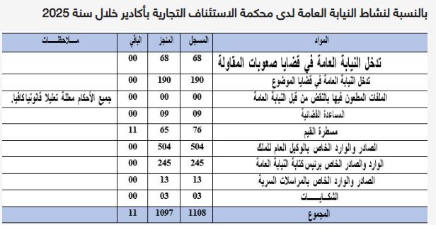 1. نشاط النيابة العامة بالمحكمة الابتدائية التجارية بأكادير (2025):
