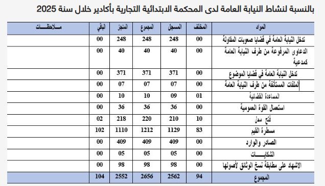 2. نشاط النيابة العامة بمحكمة الاستئناف التجارية بأكادير (2025):