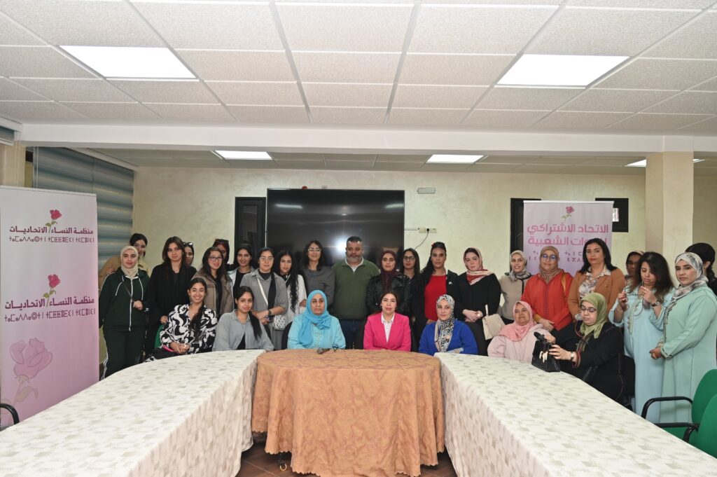 “المشاركة السياسية للنساء: من التمثيلية إلى صناعة القرار”، حيث شكل هذا النشاط فرصة للنقاش حول سبل تعزيز حضور النساء في الحياة السياسية والانتقال من مجرد التمثيلية إلى المساهمة الفعلية في صناعة القرار وتدبير الشأن العام.
