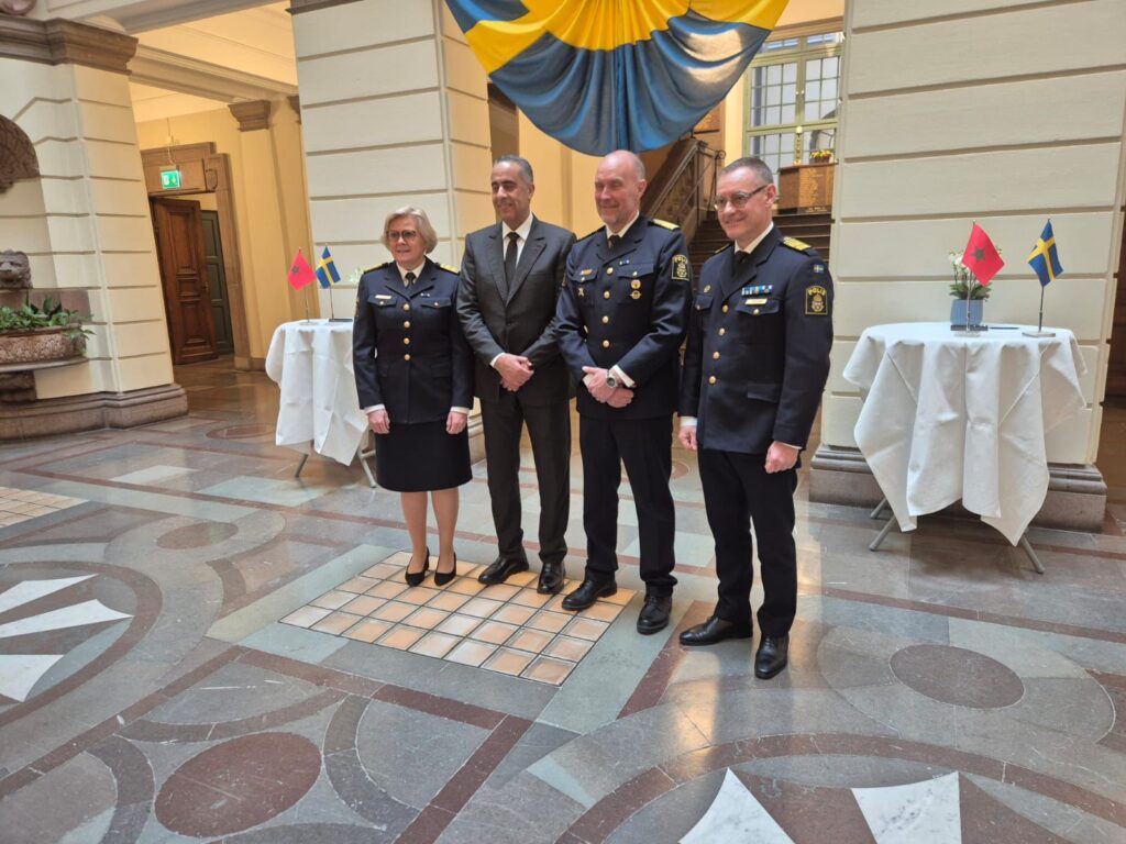 وعلاقة بهذا الموضوع، يضيف البلاغ، اقترح الجانب السويدي انضمام مصالح الأمن المغربية إلى منظومة “الشبكة الأوروبية للبحث عن الأشخاص المبحوث عنهم”، بالنظر إلى الدور الكبير الذي يضطلع به الأمن المغربي في توقيف وملاحقة الأشخاص المبحوث عنهم على الصعيد الدولي في قضايا الجريمة المنظمة العابرة للحدود الوطنية، مبرزا أنه تم التشديد، أيضا، على أهمية الاطلاع على النموذج الأمني المغربي، وضرورة توسيع التعاون الشرطي مع المغرب وجعله نموذجا في الشراكات الأمنية، باعتباره شريكا مهما وموثوقا به.