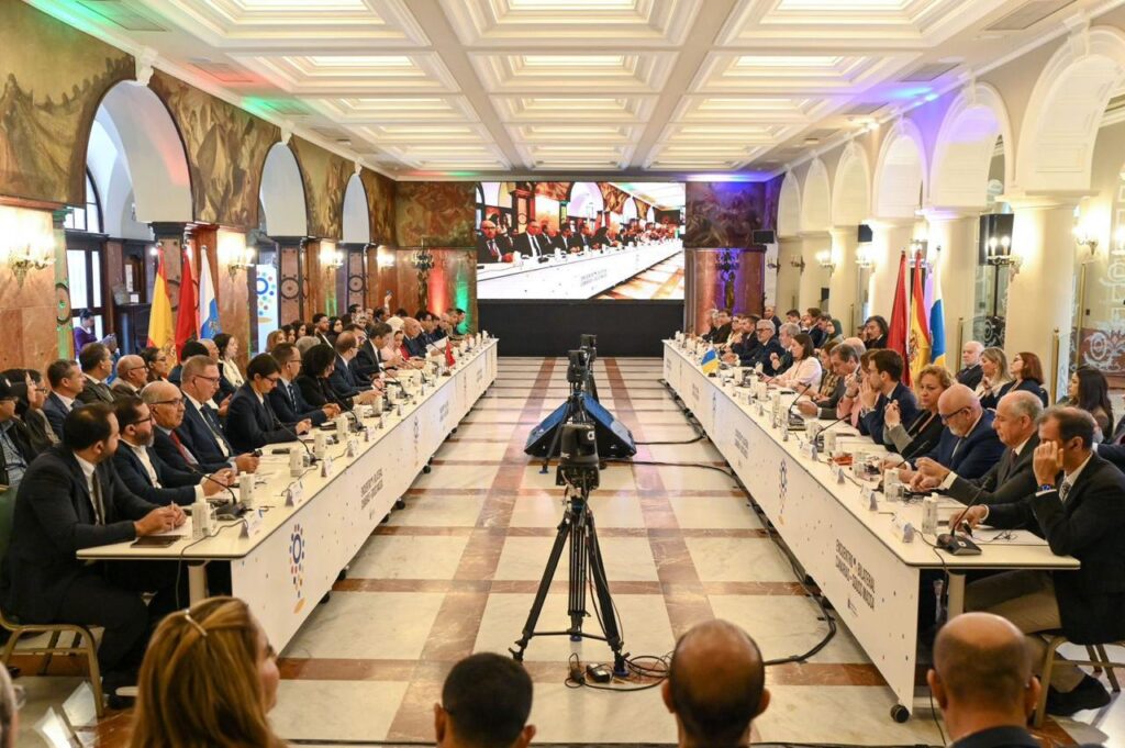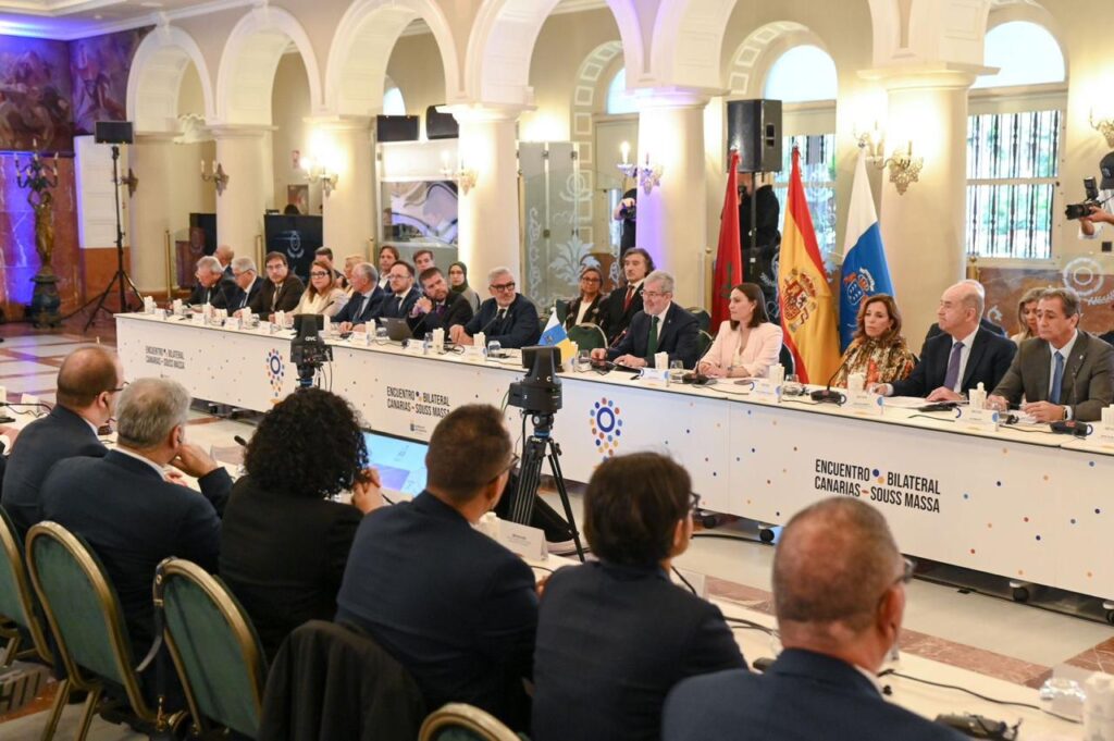ومن جانبه، أشاد السيد فيرناندو كلاڤيخو باتل، رئيس حكومة الكناري، بمستوى التعاون القائم بين جهة سوس ماسة وجزر الكناري، مُعدِّداً فرص الاستثمار المتاحة بين المجالين الترابيين والتي تشكل رافعةً مهمةً لتعزيز المبادلات الاقتصادية والشراكة الثنائية، ومتمنياً أن تُشكِّل اللقاءات بين مقاولات وجامعات ومراكز بحوث الجانبين صلة وصل مستدامة ووثيقة بين جزر الكناري وجهة سوس ماسة. كما جدَّد رئيس حكومة الكناري التذكير، في ختام مداخلته، أن التنظيم المشترك لكأس العالم 2030 يمثل فرصةً مناسبةً لتبادل الخبرات في مجال تعزيز الكفاءات وتبادل الخبرات ونقل المعرفة.