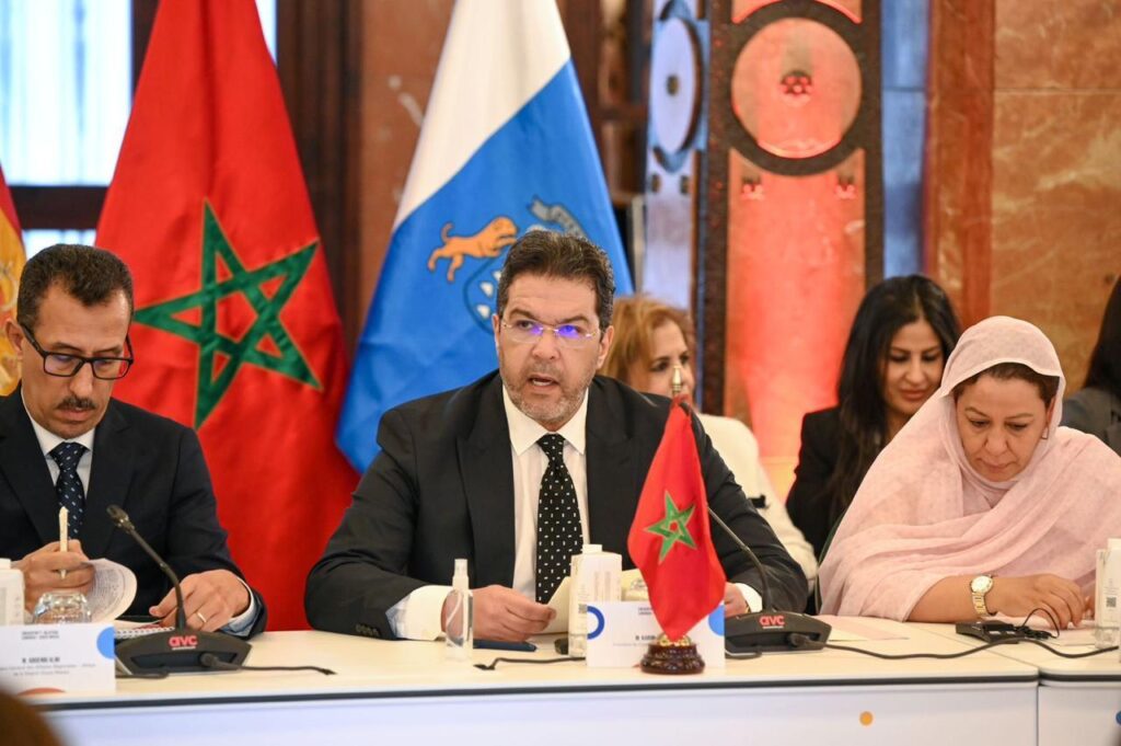 أكد السيد كريم أشنكلي، رئيس مجلس جهة سوس ماسة، في كلمته خلال الجلسة الافتتاحية للقاء رفيع المستوى بين جهة سوس ماسة وحكومة جزر الخالدات (الكناري)، الذي تحتضنه مدينة لاس بالماس من 27 إلى 29 أبريل الجاري، بحضور السيدة فتيحة الكموري، القنصل العام للمملكة المغربية بالكناري، على أن الأواصر التي تجمع الطرفين “تُشكل نموذجاً متميزاً للتعاون اللامركزي في أبعاده الاقتصادية والتجارية وكذا السياسية والاستراتيجية”، مضيفاً أن “مثل هذه اللقاءات تشكل فرصةً لترسيخ الروابط التي تتفرد بها العلاقات الثنائية بين المملكة المغربية والمملكة الإسبانية وكذا الدينامية المتجددة التي يحرص على تعزيزها قائدا البلدين، صاحب الجلالة الملك محمد السادس نصره الله والملك فيليبي السادس، بما يضمن لها الاستدامة والمتانة”.